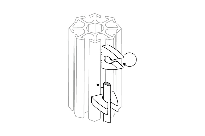 Applied on alum pole of exhibition. EX-8 to fix cable and EX-9 to fix poster or used as hook.