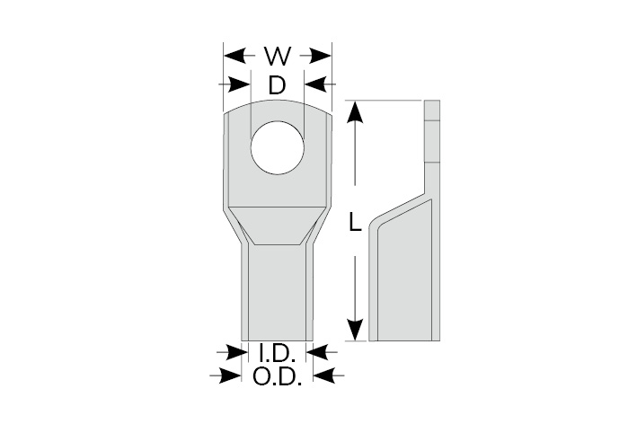 | D | W | L | I.D. | O.D. | AWG | DIN mm2 |