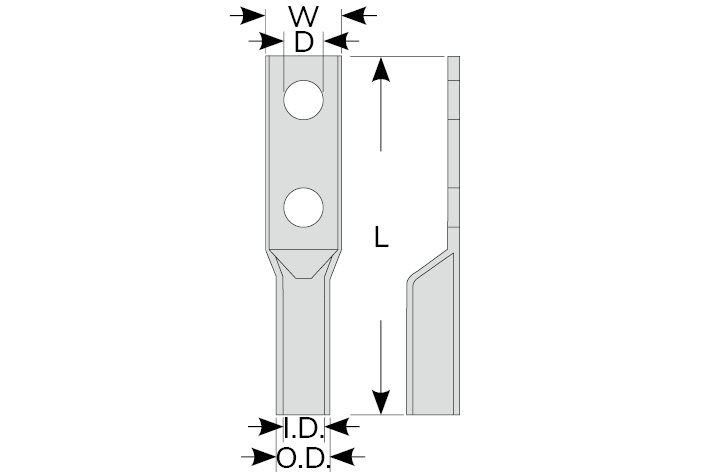 | D | W | L | I.D. | O.D. | AWG | DIN mm2 |