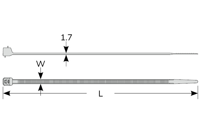 | Part No. | Length | W | Max. Bundle Dia. | Min. LoopTensile Strength | Packing |