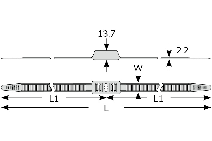 | Part No. | L | L1 | W | Mounting Hole Dia. | Max. Bundle Dia. | Min. LoopTensile Strength | Packing |