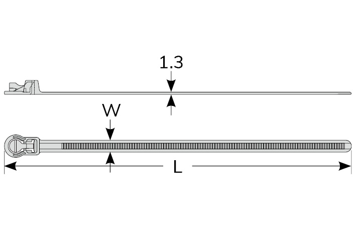 | Part No. | Length | W | Max. Bundle Dia. | Min. LoopTensile Strength | Packing |
