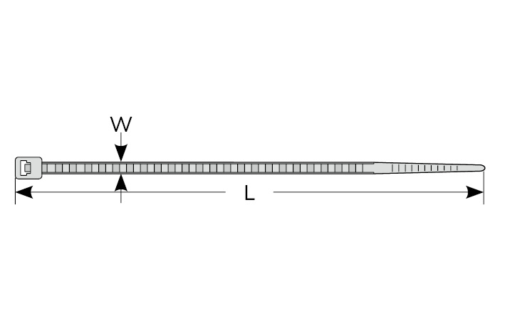 | Part No. | Length | W | Max. Bundle Dia. | Min. Bundle Dia. | Min. Loop Tensile Strength | Packing |