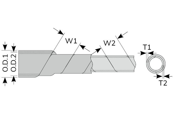 | Part No. | O.D.1 | T1 | W1 | O.D.2 | T2 | W2 | Wrapping range | Packing |
