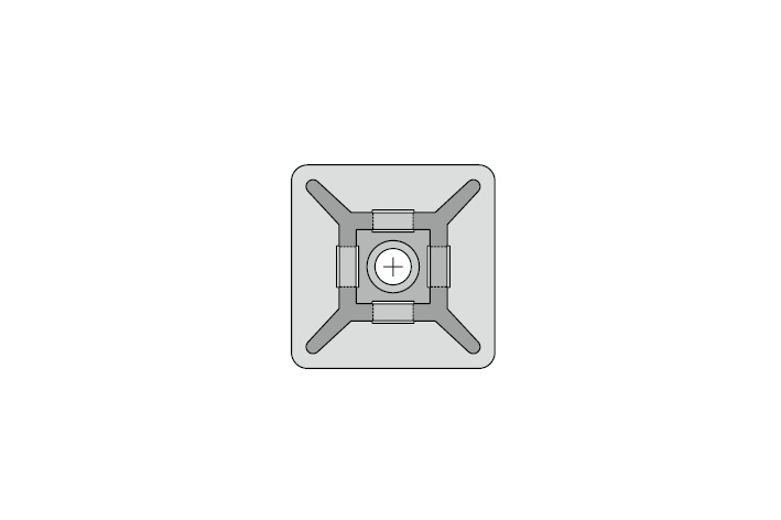 SELF-ADHESIVE TIE MOUNT is designed to support light weight wire bundles when properly applied on any clean, smooth, grease-free surface. For heavy support, mounting hole is provided for screws.