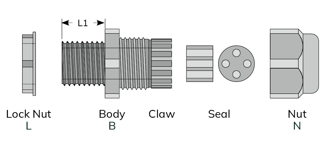 | ● | Multi-Hole Design organizes more than one cable within a gland. |
