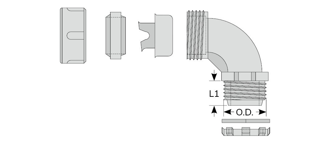 | Part No. | Thread | Thread O.D. | Mounting Hole | L1 | Suitable for metal flexible conduit | Packing |