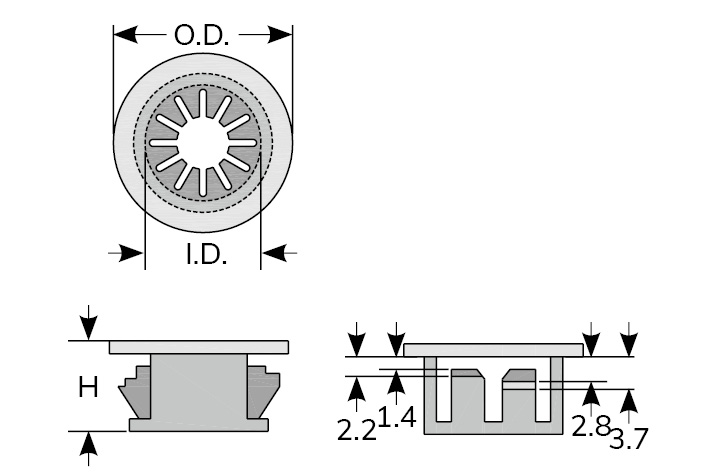 | Part No. | Mounting Hole | Chassis Thickness | I.D. | O.D. | H | Packing |